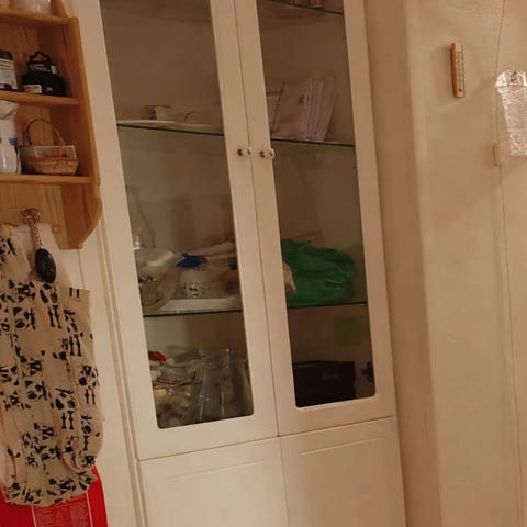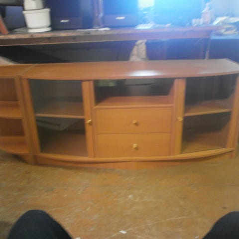 Tukevat hyllyt, sopii kirjoille tai astioille. Sivuhyllykön leveys 24cm ja syvyys 15cm. Siistikuntoiset. Vain nouto.