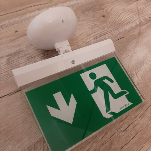 Teknoware TMS6082NVA poistumistievalaisin LED-valonlähteellä. Valaisin on tarkoitettu poistumisreittien ja hätäuloskäyntien merkitsemiseen sisätiloissa.