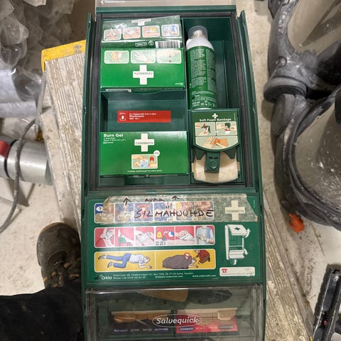 Cederroth ensiapuasema seinämalli vihreä. Asemassa on useita eri ensiaputarvikkeita, kuten laastareita, sidetarpeita, Burn Gel -palovammatuotteita sekä Safequick-laastariautomaatti. Läpinäkyvän etukannen kautta sisältö on helposti nähtävissä. Asema on tarkoitettu kiinnitettäväksi seinälle esimerkiksi työpaikoille, varastoihin tai muihin tiloihin, joissa tarvitaan keskitetty ensiapupiste.