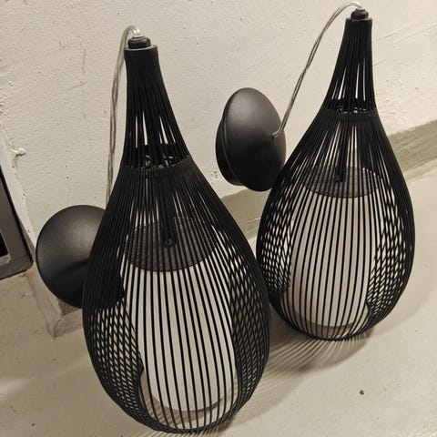 Upeat katseenvangitsijat myynnissä! Kappalehinta 80€ tai yhteensä 150€ molemmat. Lampuissa on E27 lamput. Säätövaraa on, lyhyemmän lampun kaapelit on kerällä pikku kuvun alla.