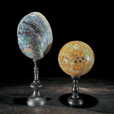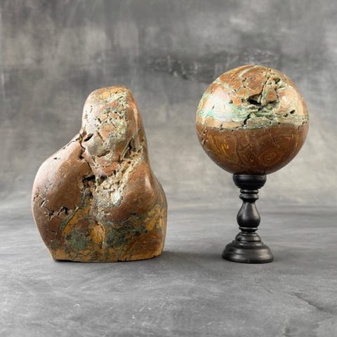 Häikäisevä pari vihreitä smithsoniittipalloja räätälöidyillä jalustoilla.Vihreä smithsoniitti, joka tunnetaan myös nimellä vihreä sinkkisavi, on mineraali, joka kuuluu karbonaatit mineraaliryhmään. Se on sekundäärinen mineraali, joka muodostuu primaaristen sinkkivarantojen rapautumisen ja hapettumisen seurauksena. Smithsoniitti esiintyy tyypillisesti eri väreissä, kuten vihreänä, sinisenä, vaaleanpunaisena, keltaisena ja ruskeana. Smithsoniitin vihreä väri johtuu usein kuparipitoisuuksista. Se on suhteellisen pehmeä mineraali, jolla on kovuus 4–4,5 Mohsin asteikolla, mikä tekee siitä naarmuuntuvia.Arviolta koko jalustan kanssa.# Pallo 1 - Korkeus: 19 cm Leveys: 10,5 cm# Pallo 2 - Korkeus: 15 cm Leveys: 7.5 cmHUOM:Tuotteisiin kuuluu jalusta.Mainittu paino sisältää pakkausmateriaalin.LähetysKohde lähetetään seurantanumerolla DHL Parcelin, DPD:n tai postNlin kautta. Seuranta päivittyy Catawiki-luettelossasi, kun pakettisi on jätetty postiin.Ole hyvä ja tarkista säännöllisesti välttääksesi pakettisi palautumisen meille, jolloin ostaja vastaa toisen lähetyksen toimituskuluista.Seurantaan Espanjaan ja Portugaliin käytä tätä linkkiä ja lisää Catawiki-erästäsi saatu seurantanumero.https://clientesparcel.dhl.es/LiveTracking/HomeME EMME YHDISTÄ TOIMITUKSIA!!!Jos sinulla on kysyttävää paketistasi, ota meihin yhteyttä Catawiki-viestipalvelun kautta. Pyrimme vastaamaan kolmessa työpäivässä.