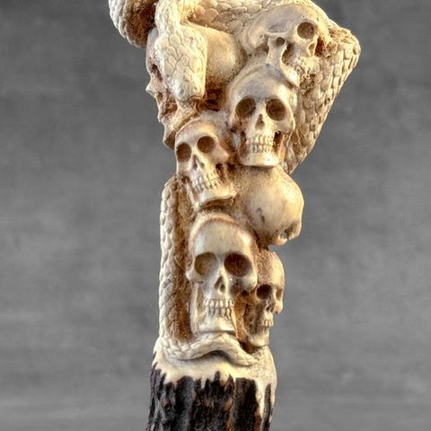 Kaiverrus, Stunning Snake carving from deer antler on a custom stand - 19 cm -