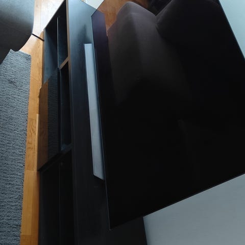 Annetaan siistikuntoinen ja tukeva tummanruskea TV-taso