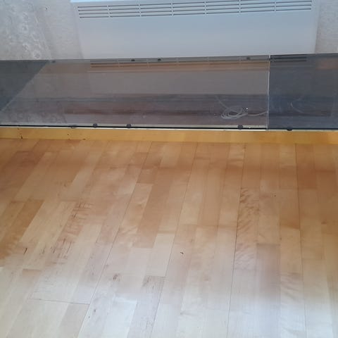 Annetaan erittäin siistikuntoinen ja tukeva tummanruskea TV-taso.
