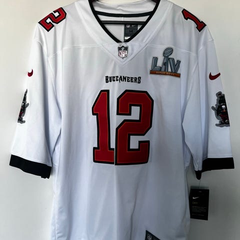 Nike NFL Tampa Bay Buccaneers Tom Brady pelipaita nuorten M -kokoa. Paita on harmaa punaisilla ja valkoisilla yksityiskohdilla. Edessä ja takana numero 12, takana lisäksi pelaajan nimi. Lyhythihainen malli, V-kaula-aukko. Rintamuksessa NFL-logo ja joukkueen nimi, hihoissa joukkueen logot.