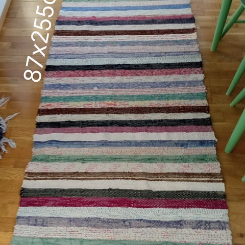 Käsinkudotut räsymatot, koko 84x251 cm. Vain nouto.