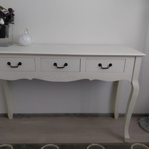 Pieni laatikolla oleva sivupöytä. Ei antiikkia. Kevyt siirellä.