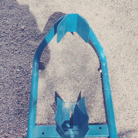 Kuvien mukainen sivukilpi teline. Alumiinia. Reikä n.31mm. pieni jälki toisessa yläkulmassa, helppo hienostella kuntoon.