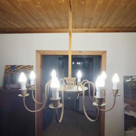 8 haarainen kuparikattokruunu. Hyvä kuntoinen ja ehjä!