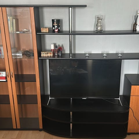 Ehjä tv-taso vitriinikaapilla väri pyokki
