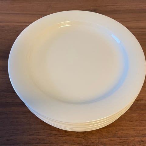 Kaksi lautasta vähän huonommassa kunnossa, muissa myös pientä käytönjälkeä näkyvissä. Yleisilmeeltään kuitenkin siistit ja ehjät lautaset.