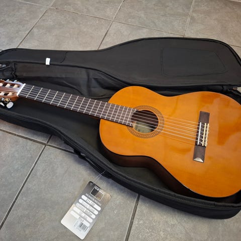 Admira Sevilla klassinen akustinen kitara. Täysikokoinen nailonkielinen malli, jossa on puunvärinen kansi ja tumma otelauta. Soveltuu klassisen kitaran soittoon sekä opiskeluun ja harrastuskäyttöön. Jokusen kielen saa mukaan ja telineen tarvittaessa hyvässä kunnossa on hyvin soi TARJOOHAN JOTAI