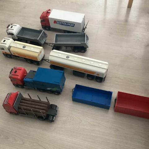 Emek lelu-puutavararekka keltainen. Rekassa on keltainen ohjaamo ja perävaunu, jossa on puutavarakuorma sekä nosturi puiden lastaamiseen ja purkamiseen. Soveltuu leikkiautoista pitäville lapsille sisä- ja ulkoleikkeihin valmistajan ohjeiden mukaan.