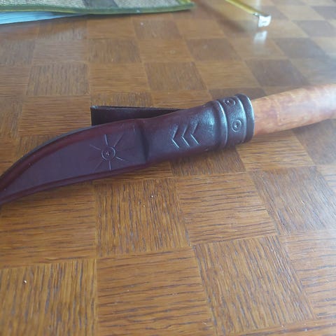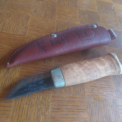 Puukon pituus noin 20 cm. Nahkatuppi. Nouto Tampereelta tai postitus.