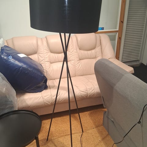Siisti musta Sputnik valaisin. Pistoke mukana. ( kaksi ruuvia puuttuu pidikkeestä)