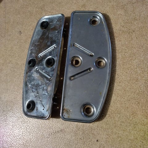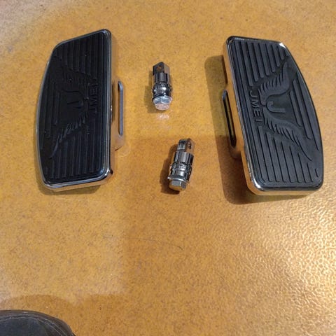 Kuvien mukaiset Harley-Davidson astinlaudat eteen ja taakse kuvissa näkyvin runko-osineen. Spesiaalit, nettiselailulla centerline ilmeisesti mallimerkintä. Ei pahoja naarmuja, kumit kohtuu hyvät, etulautojen alapinnassa ruostepiskoa. Myydään sarjana.