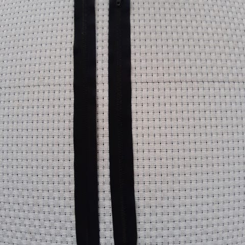 Musta vetoketju, umpi, 28 cm, hammastus 8 mm. Piilovetoketju, umpi, vaaleankeltainen, 40 cm, hammastus 3 mm