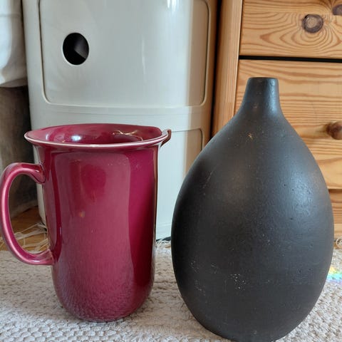 Annetaan 2kpl maljakoita. Isommassa ihan pienen pieni halkeama reunassa.