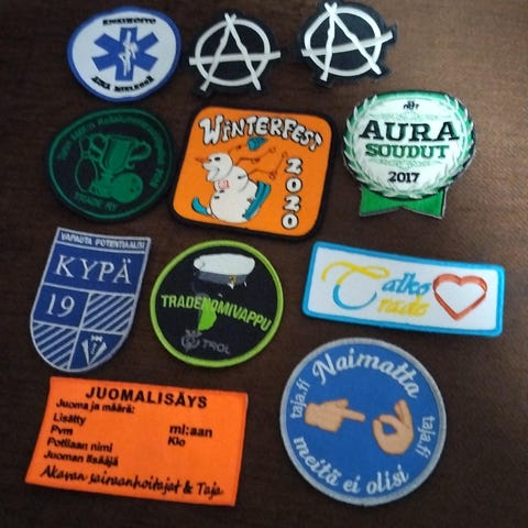 Käyttämättömiä haalarimerkkejä. 0,50€/kpl / tarjoa. Myös nouto Myllypurosta onnistuu