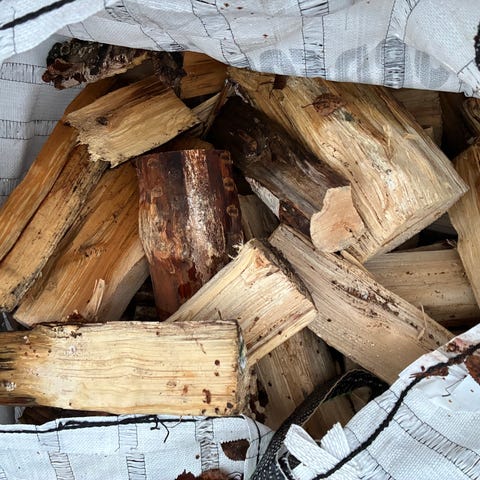 Juuri pilkottua. Pääosin koivua. Tehty viime talvi/kesäisistä rangoista. Osin oli kuivahtanutta. Jokunen tuore kapula oli seassa.