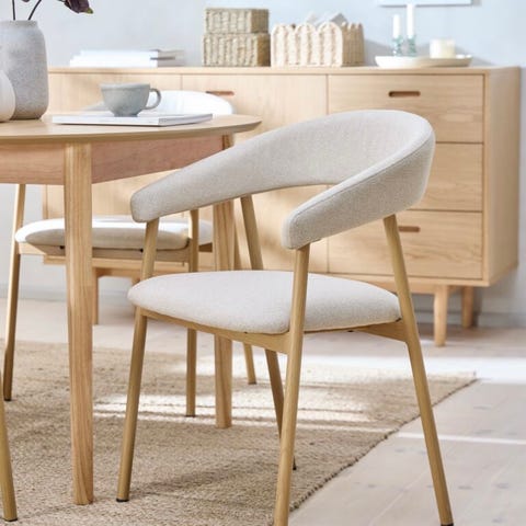 "Puutuoli poikkipuisella selkänojalla ja pehmustetulla istuimella tuo pöytään tyyliä ja mukavuutta. Pestävät päälliset helpottavat ylläpitoa."