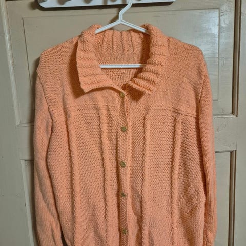 Kaunis, hieman A-linjainen neuletakki, jossa napit. Sävyltään sini-vihreä. Koko M-L, mittoja kuvissa. Materiaali villasekoitetta.