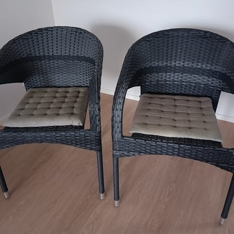 Musta parveketuoli. Istuintyynyn saa kaupanpäälliseksi halutessaan.