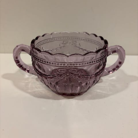 Hyväkuntoinen ametistin värinen kannu.