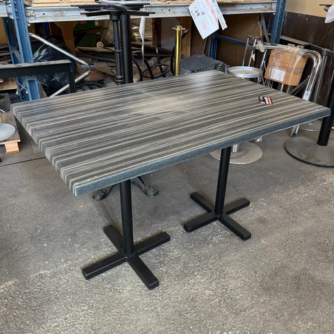 Lastulevyrunkoinen taso, ollut näyttelytilan pöytänä ennen kun jäi vaille käyttöä.