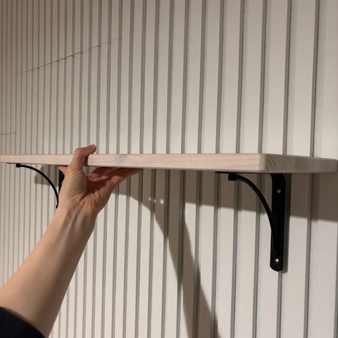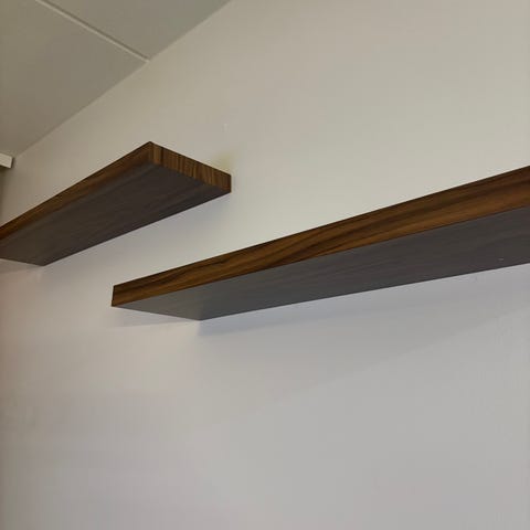 Uusi ostettu hyllyt, joka kiinnitetään seinään. Myyn, koksa väri ei ollut sopiva.