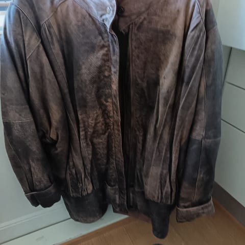 Pitkähkö ruskea nahkatakki jossa huppu. Kokolapussa 40, vastaa enemmän 38 kokoa
