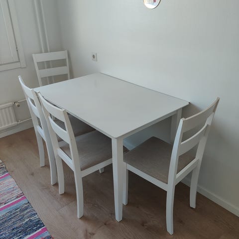 Hyvä kuntoinen ruoka ryhmä pöytä jatkettava ja 6 tuolia
