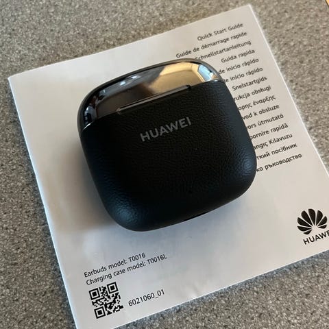 Mustat Huawei Freebuds SE 3 nappikuulokkeet. Näitä vain kerran kokeiltu ja todettu itselle sopimattomiksi.