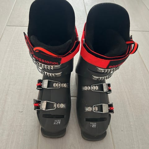 Head naisten laskettelumonot, koko 26,0 (pohjassa merkintä 290/26.0). Väri harmaa. Monossa useita mikrosäädettäviä solkia sekä tarrakiristys varren yläosassa. Kengän koko 39,5.
