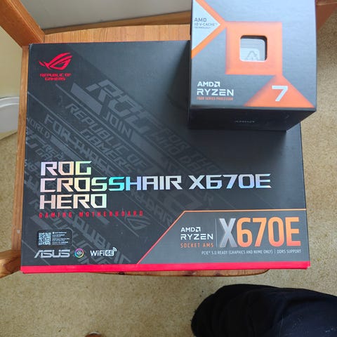 27.4.2024 ostetut emolevy ja prosessori. Ollut kevyellä käytöllä toukokuuhun 2025 saakka. Sen jälkeen olleet käyttämättöminä kaapin perällä.