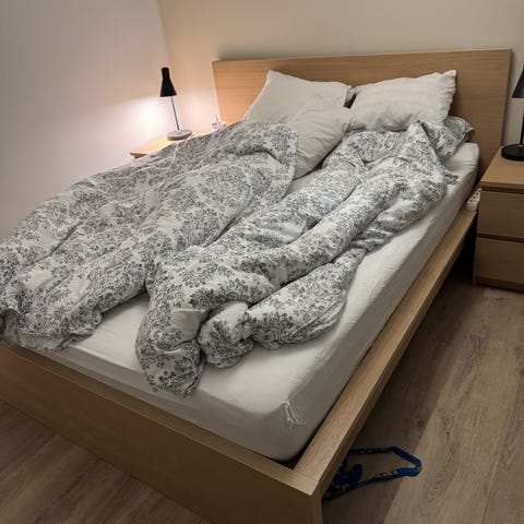 Hyvässä kunnossa oleva MALM valkoinen sängynrunko 140 x 200 cm.