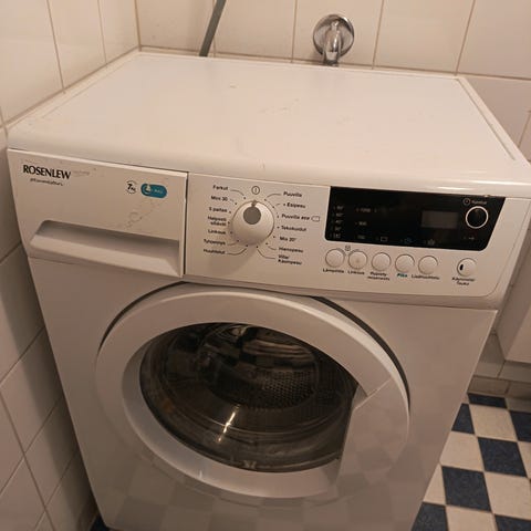 Kone toimii mutta se ottaa vettä kovin hitaasti. Liene joku roska jossain. Eli pitäisi varmaan puhdistaa ennen käyttöä.