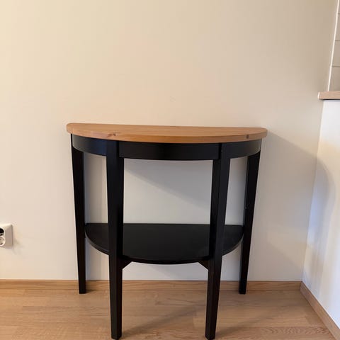 Parvekkeella käytössä ollut edelleen siisti musta metallinen sivupöytä. Pyyhkäisemällä saa siistiksi. Ei lommoja tai isompia näkyviä naarmuja.