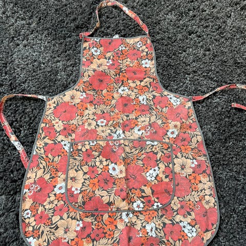 Romanttinen kukkia ,vintage esiliina tosi kaunis siustiä ja ehjä , postitus onnistuu