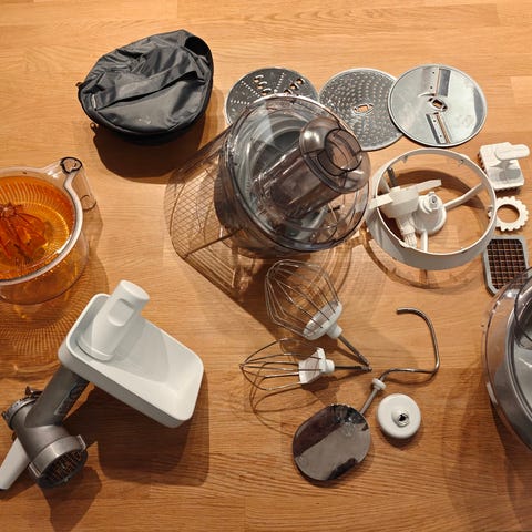 Yleiskoneen lisäosia, olleet käytössä Bosch Mum84 -koneessa. Tehosekoitin, rastin usealla terällä, sitruspuserrin, lihamylly ja vatkaimet. Kaikkiin käyttöohjeet. Ei konetta mukana kaupassa.