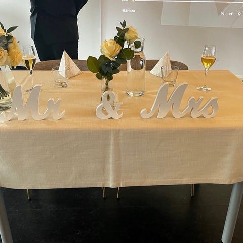 Hääparin pöytään helmalakana, rypytyksen määrä itse säädettävissä. Mukaan ikean taggvalmo lakana, jossa tarranauhat helmalakanan asettelun helpottamiseksi