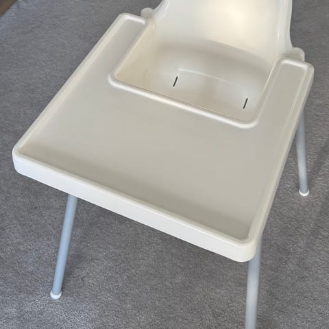IKEA syöttötuoli istuinkoroke pöytätasolla ja pehmusteella