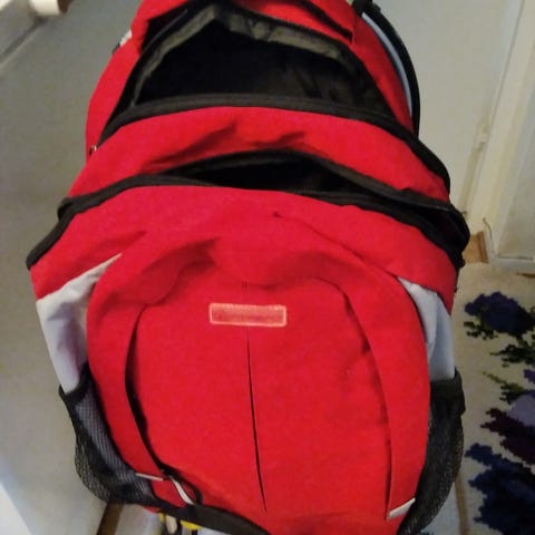 Käytetty, hyvä kunto. Ainut miinus lemmikkipupun hampaan jäljet pohjan reunassa ja kulumaa selkäosan kankaassa (ei huomaa käytössä tai vaikuta käyttöön), näistä kuvat. Nämä huomioitu hinnassa. Kangashihnojen pinnoissa pientä nukkaa mutta käyn läpi nukkaimurilla ja teippiharjalla ennen kauppoja.