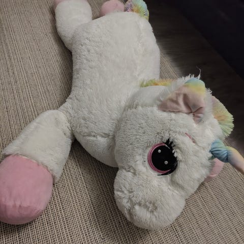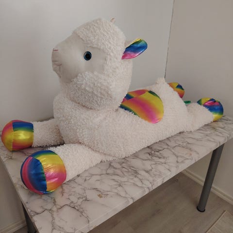 Hartaasti leikitty iso laamapehmo. On tahroja jonkin verran. Nouto vaajakoskelta.