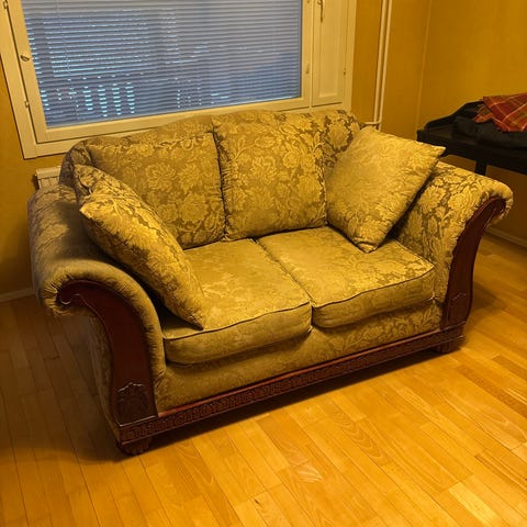 Muuton myötä annetaan vuodesohva säilytystilalla. Ikää noin kymmenen vuotta, hieman natisee paikoittain, mutta asiansa ajaa edelleen. Kissakoti. Vain nouto Allitieltä.