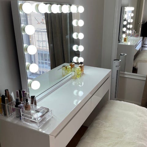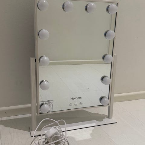 Iso meikkipeili glittervalolla. Valo aika himmeä mutta toimii. Sävyä ja kirkkautta pystyy säätämään. Koko 80x58cm