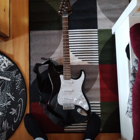 Williams sähkökitara. Pieni vahvistin, Säilytyspussi ja Lattiateline tulee mukana. Hp. 90e. Myynnissä myös muualla.
