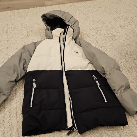 Reiman kirjava/leopardikuvioinen toppatakki, josta saa myös liivin. Koko 128cm.