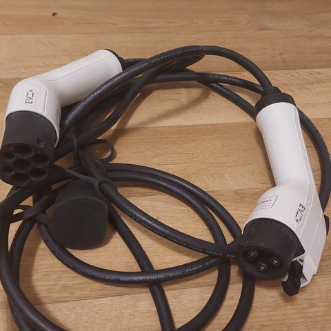Lähes käyttämätön hybridin tai täyssähköauton latauskaapeli.