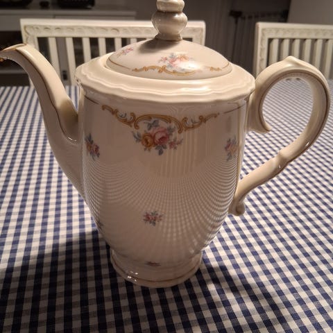 Bareuther Waldsassen Bavaria astiasto 1960-luvulta, tarjoiluvati, 2x tarjoilukulho, soppakulho, kastikekulho, 6x syvä lautanen, 6x leipälautanen ja 5x ruokalautanen. Uudenveroisessa kunnossa, käyttämättömät. Tarjoiluvati 21,5cm x 31,5cm. Kaksi syvää tarjoilukulhoa, halkaisija 22cm ja korkeus 6cm. Soppakulhon halkaisija 25cm ja syvyys 10,5cm. Leipälautasen halkaisija 20cm, ruokalautasen halkaisija 24cm ja syvän lautasen halkaisija 22cm. Kastikekulho 14cm x 10,5cm ja korkeus n.7cm.